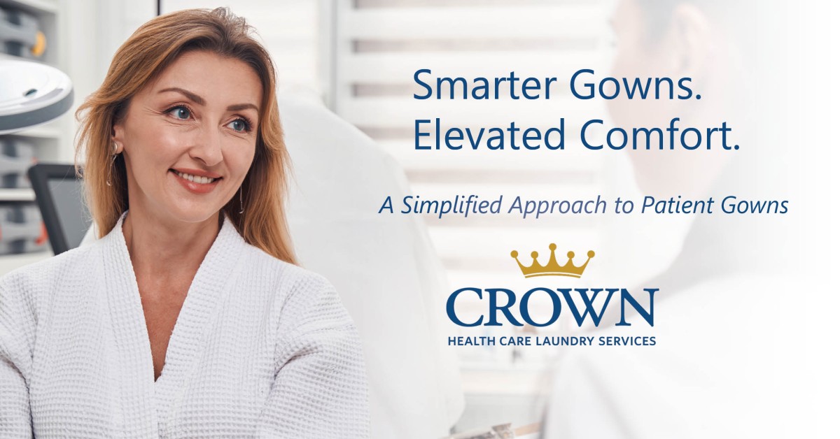 Crown is transitioning from green patient gowns and purple IV gowns to a universal blue triangle gown. Many of our customers already use this gown, so for some there will be no change.